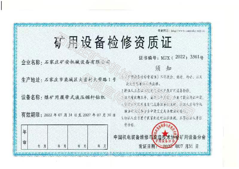 石家莊礦安機械設備有限公司成立于2011年3月,公司位于風景優(yōu)美、科技發(fā)達、交通便利的石家莊市欒城區,是一家專注生產煤礦井下支護機具(錨桿鉆機)和安全鉆機(防突,架柱等)及氣動隔膜泵等礦用機械設備的********,是國內煤礦機械裝備的生產商和服務商,根據用戶需求提供井下適用的鉆機施工解決方案。公司致力于打造研發(fā)、制造、銷售、服務為一體的現代化企業,全心全意為煤礦生產保駕護航。 ? 公司建有裝配車間、機加車間和調試車間,擁有嚴格的質量控制體系、先進的產品開發(fā)系統、完善的試驗檢測設施、良好的售后服務保障。先后與中煤科工集團沈陽研究院、西安研究院、太原理工大學、燕山大學等知名院校建立了緊密的合作關系。 ? 公司產品主要銷往山西、陜西、山東、內蒙古、黑龍江、云南、貴州等七十多個礦區和地方煤礦,擁有一支成熟的售后技術團隊,并且和中煤集團、華電煤業集團、華潤煤業集團、潞安集團、山西焦煤、淮北礦業等國內知名企業達成長期合作關系。 ? 公司始終秉持“讓煤礦生產更安全”的發(fā)展使命,力求誠信與創(chuàng)新,追求卓越與完美,深知“實實在在、心無旁騖做實業”,這才是本分!石家莊礦安機械設備有限公司愿與您攜手共進,共同發(fā)展!為客戶創(chuàng)造價值,提供優(yōu)質的產品和*佳的服務是我們永無止境的理念!